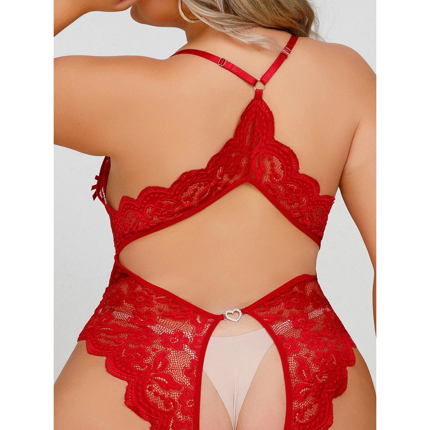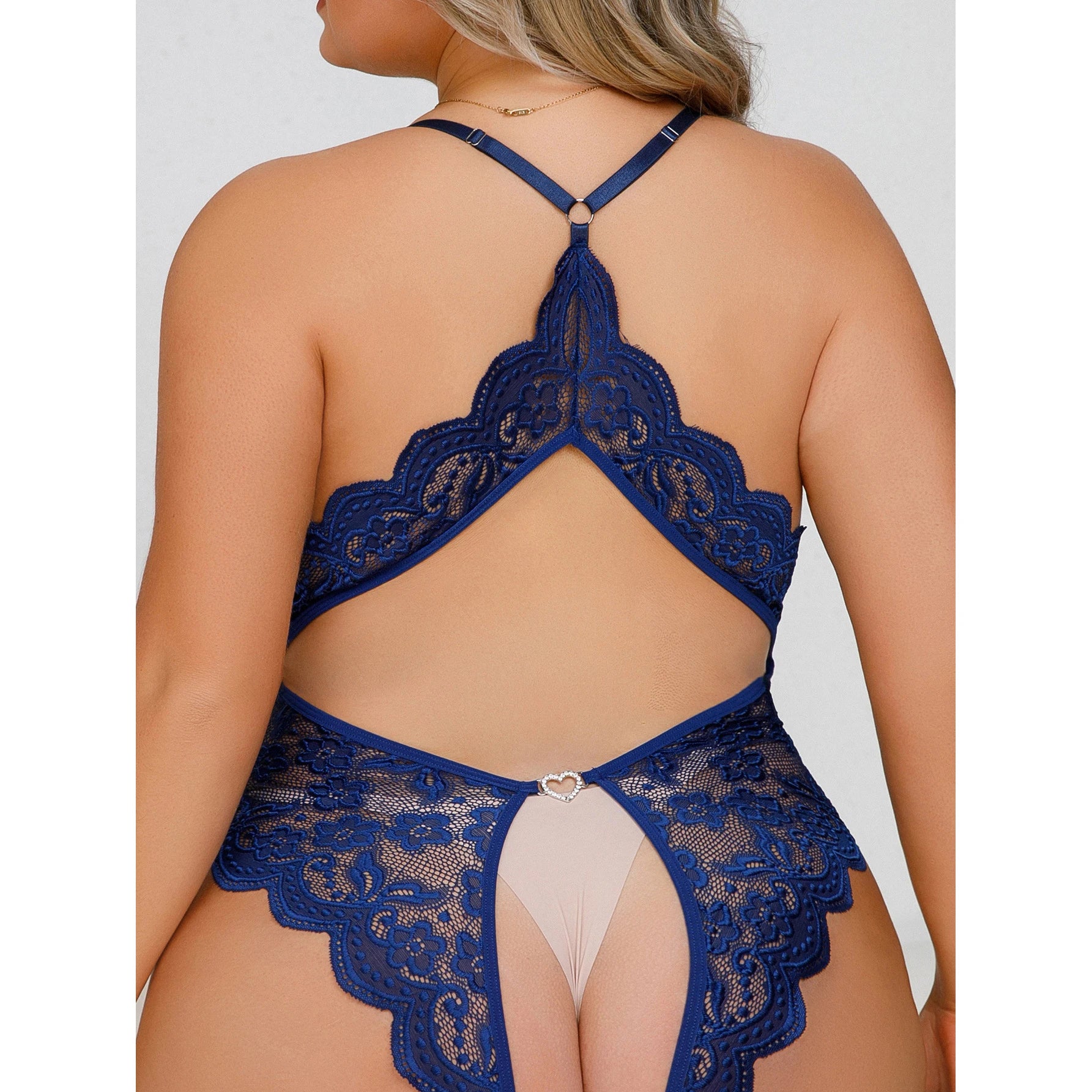 Turn up the heat with this black lace bodysuit, designed to embrace your curves and enhance your confidence. Featuring a deep plunging neckline and intricate floral lace detailing, this piece is the perfect balance of elegance and allure. The scalloped edges and adjustable straps provide a flattering fit, making it an irresistible addition to your lingerie collection.